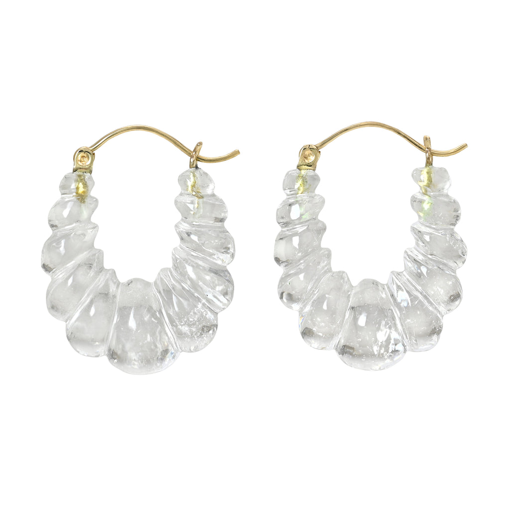 QUARTZ CRYSTAL CARVED STONE HOOP EARRINGS