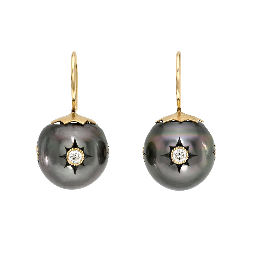 DIAMOND POLARIS TAHITIAN PEARL DROP EARRINGS