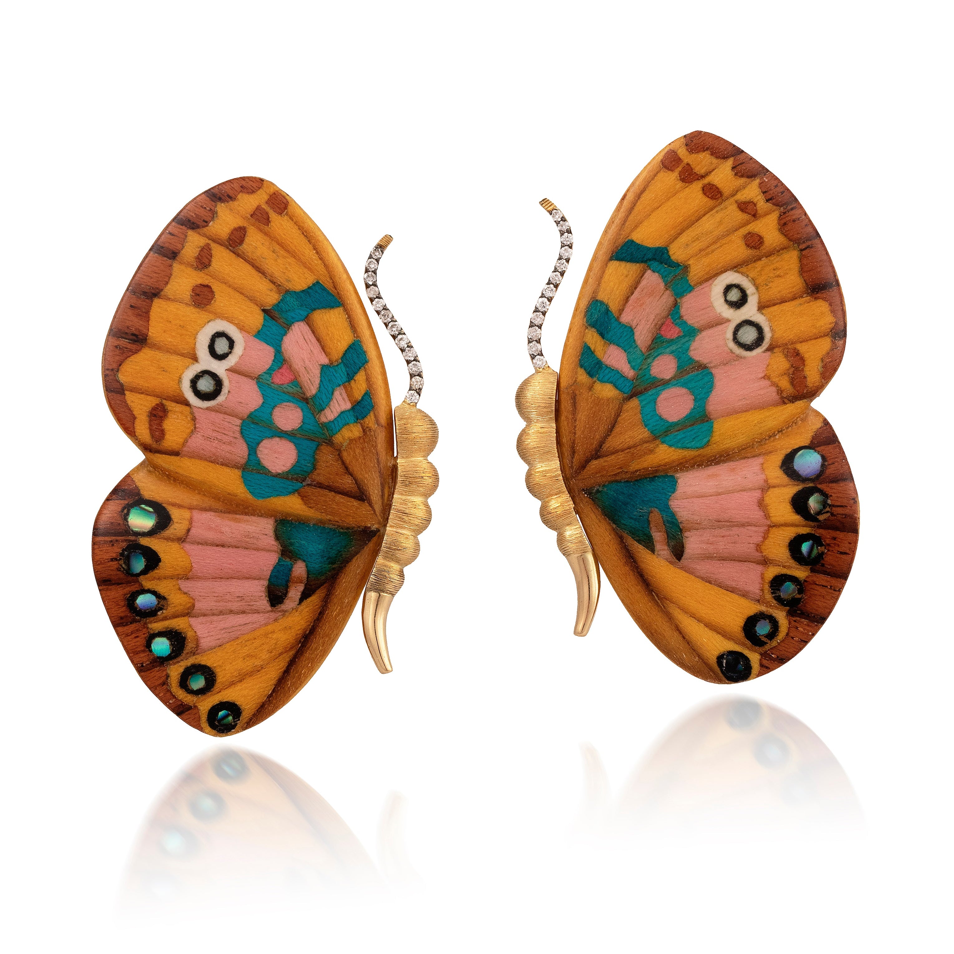 MEDIUM BUTTERFLY MARQUETRY EARRINGS