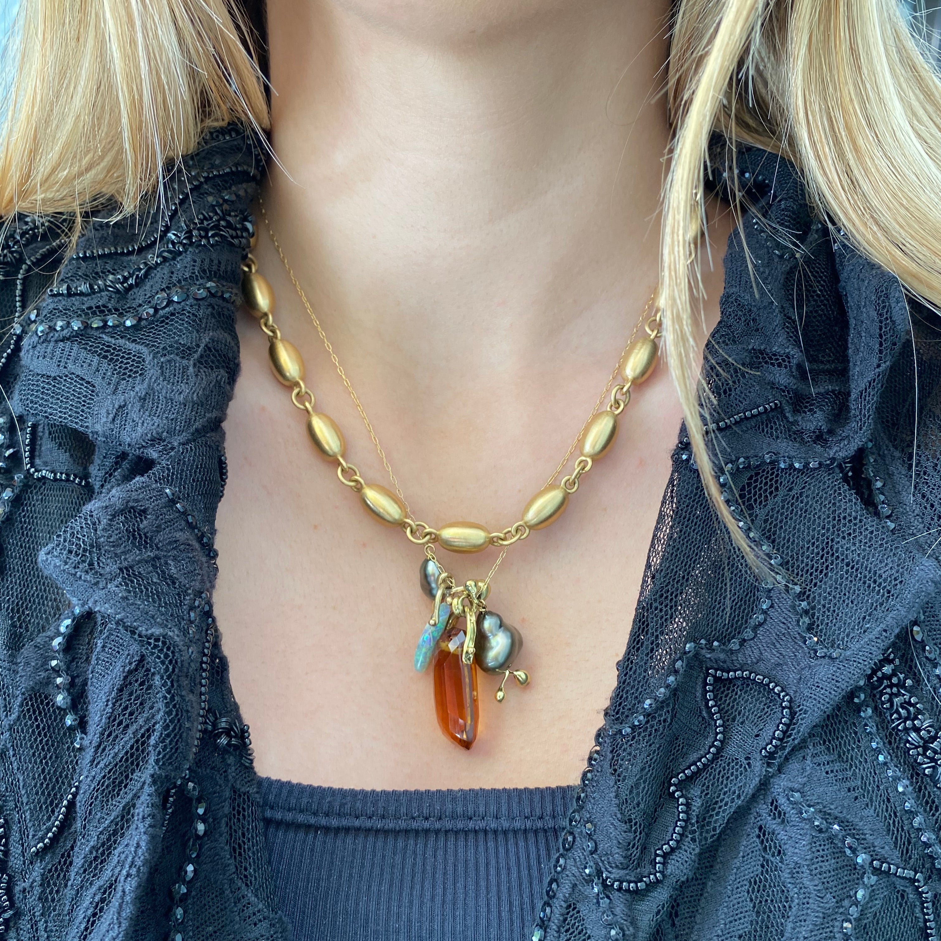 TAHITIAN PEARL, OPAL, & CITRINE CHARM NECKLACE