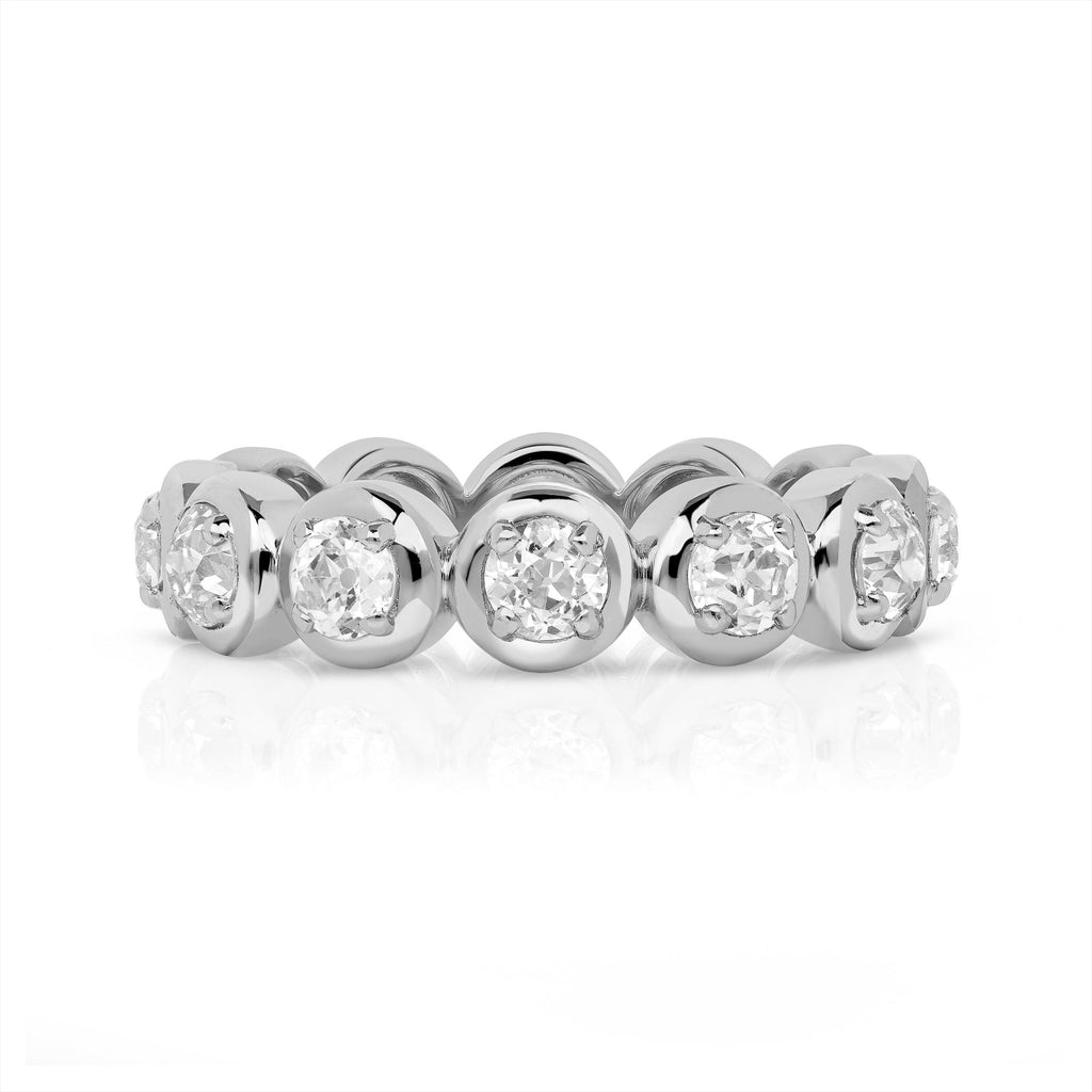 The 19th century brought about techniques that advanced the diamond cutting industry and thus, the old European cut diamond was born. With 58 facets, a small table, high crown angle, circular shape, and open culet, the old European cut diamond became the precursor to the modern round diamonds that we see today. Our vintage old European cut diamonds, cut primarily in the 1920s and 1930s, are used in many of our designs, from larger center stones to small, pave set diamonds.