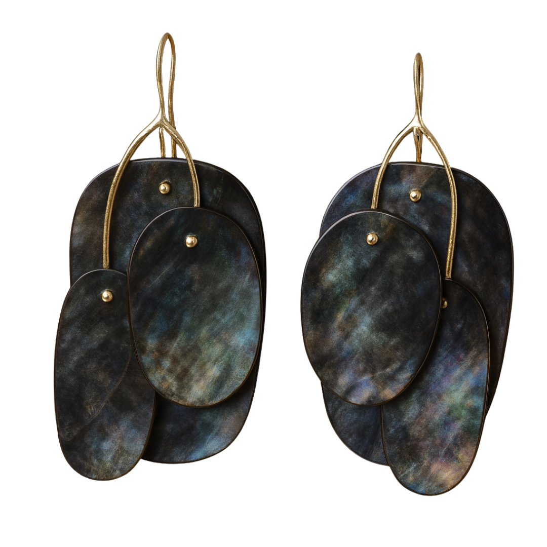 BLACK MOTHER OF PEARL TOTEM EARRINGS