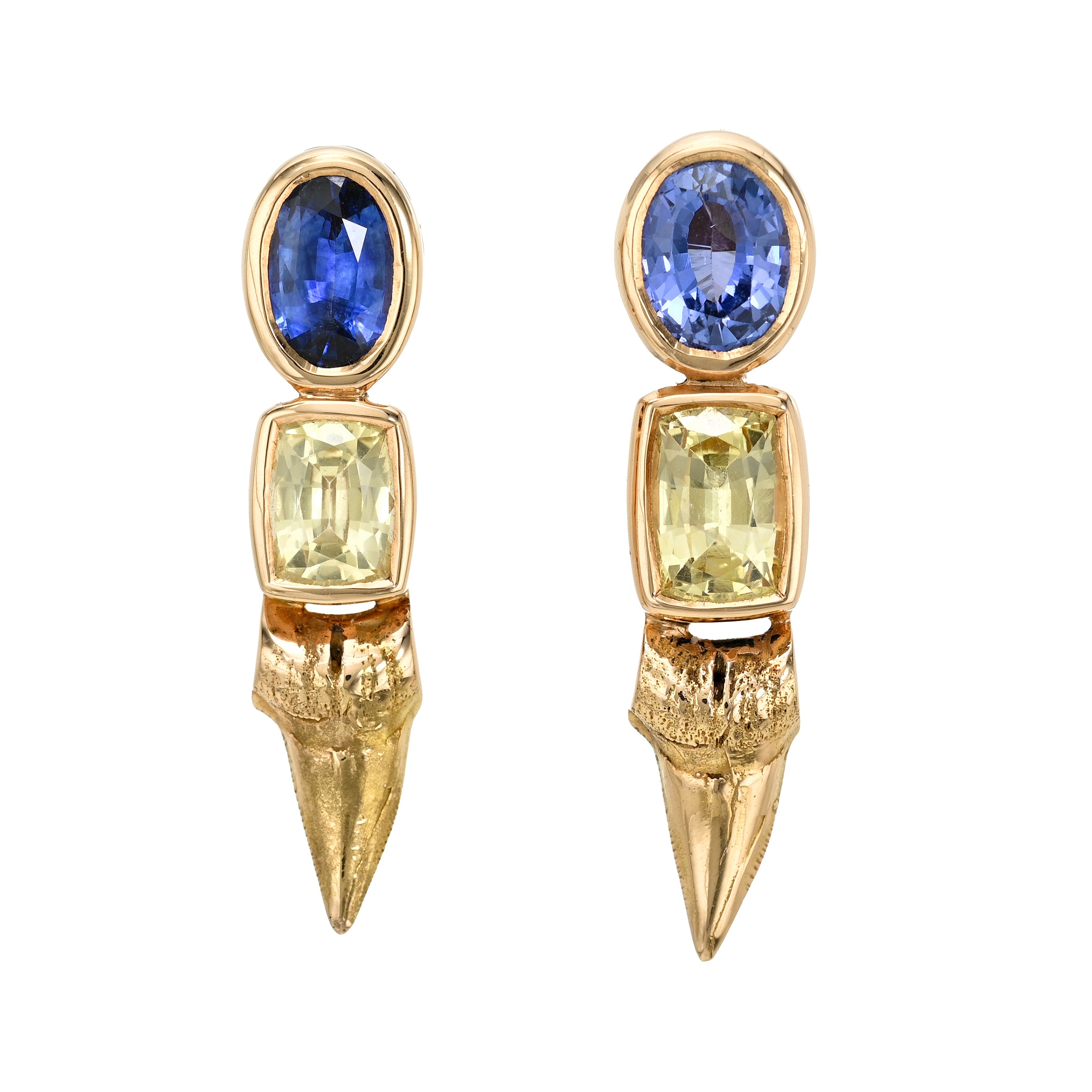 BLUE & YELLOW SAPPHIRE SHARK TOOTH EARRINGS