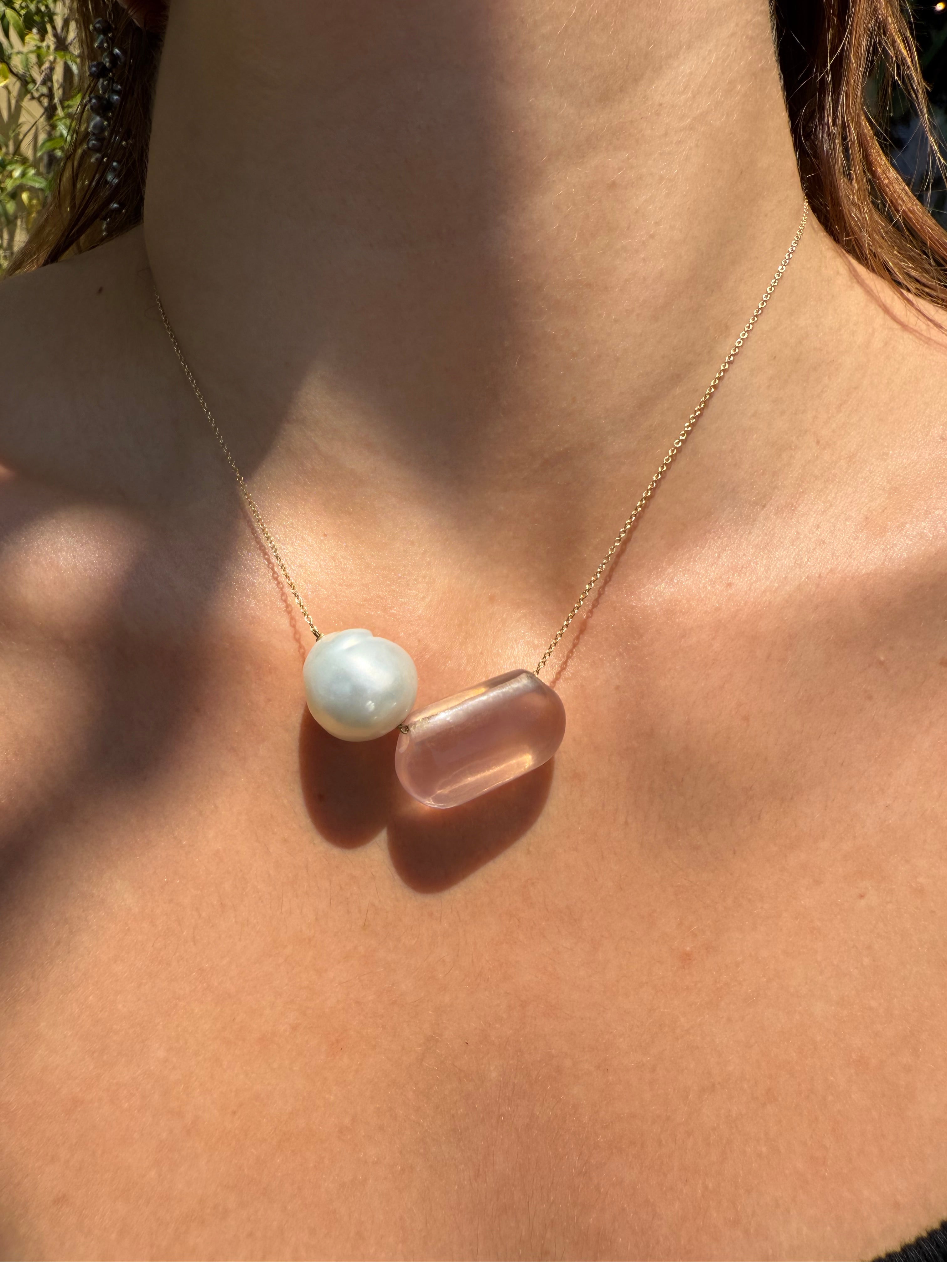 ROSE QUARTZ TAPIS BEAD AND SOUTH SEA PEARL NECKLACE