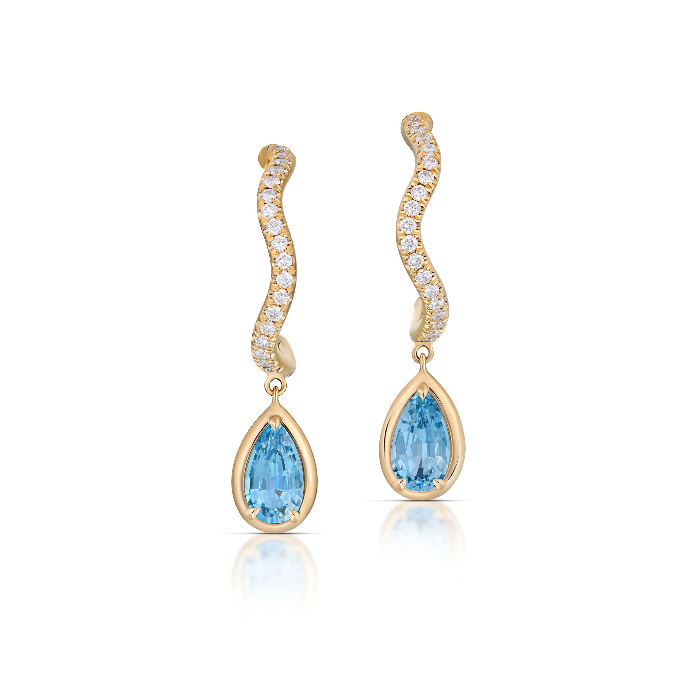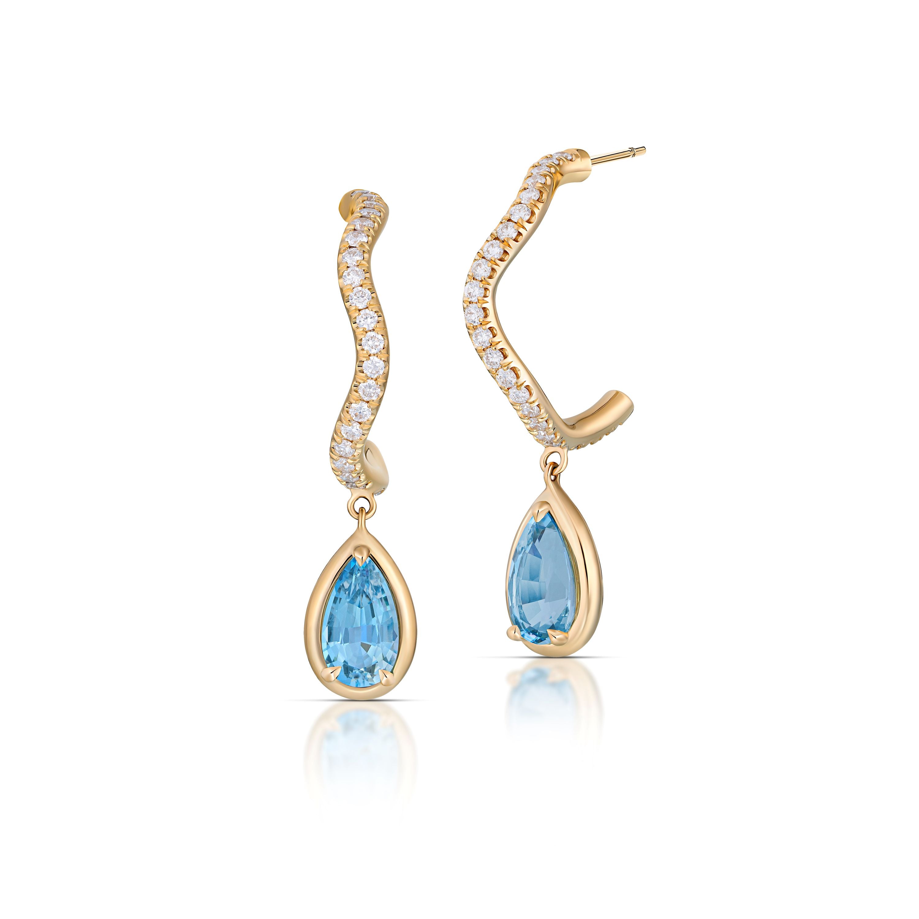 PEAR SHAPED AQUAMARINE CURVA DROP PAVE HOOP EARRINGS